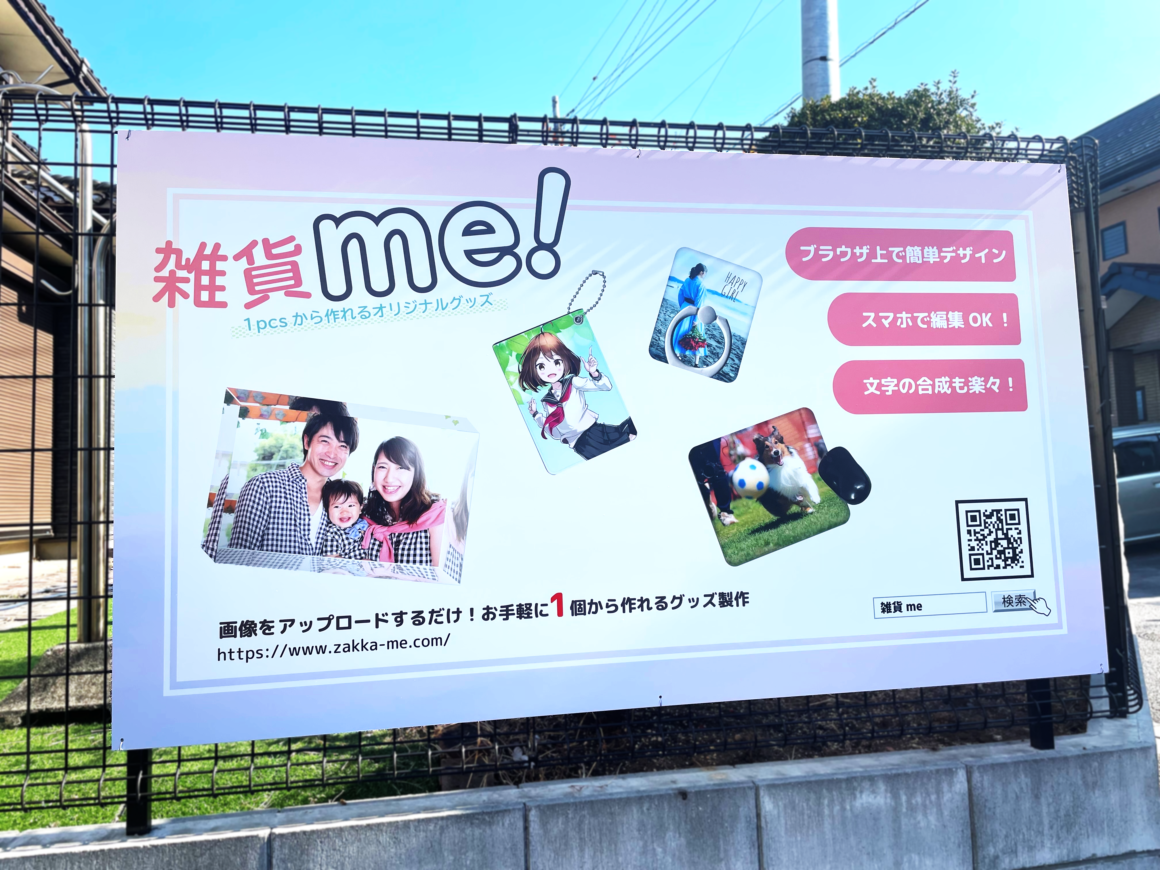 雑貨me!の看板が完成し、早速事務所に設置いたしました。