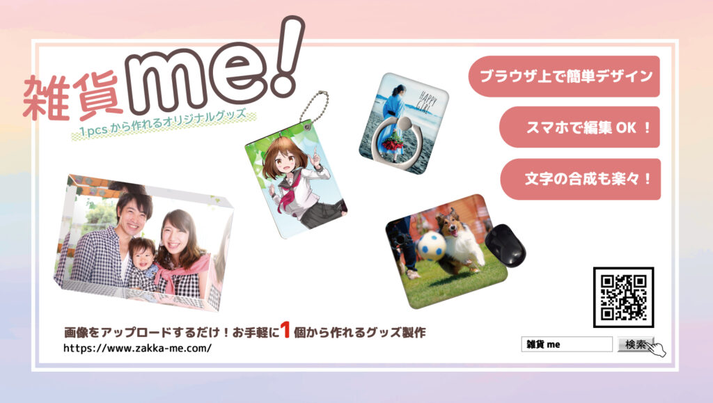 今年の思い出の1枚、大切な人へのプレゼントなど、この機会に是非「雑貨me!」でのグッズ作成をお楽しみください。