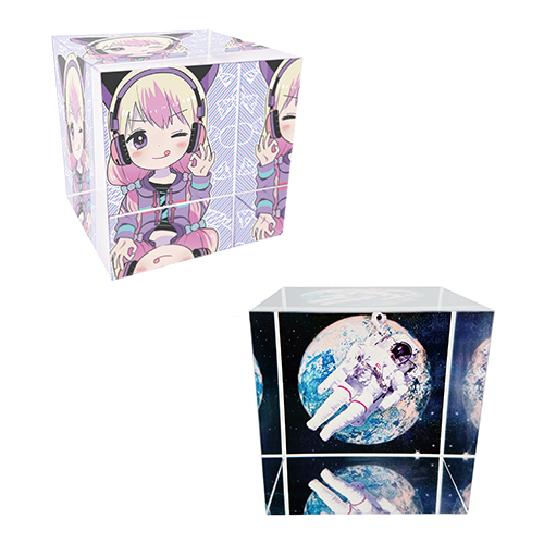 透明感のあるキューブの中で、お気に入りのイラストや写真が反射する様子は