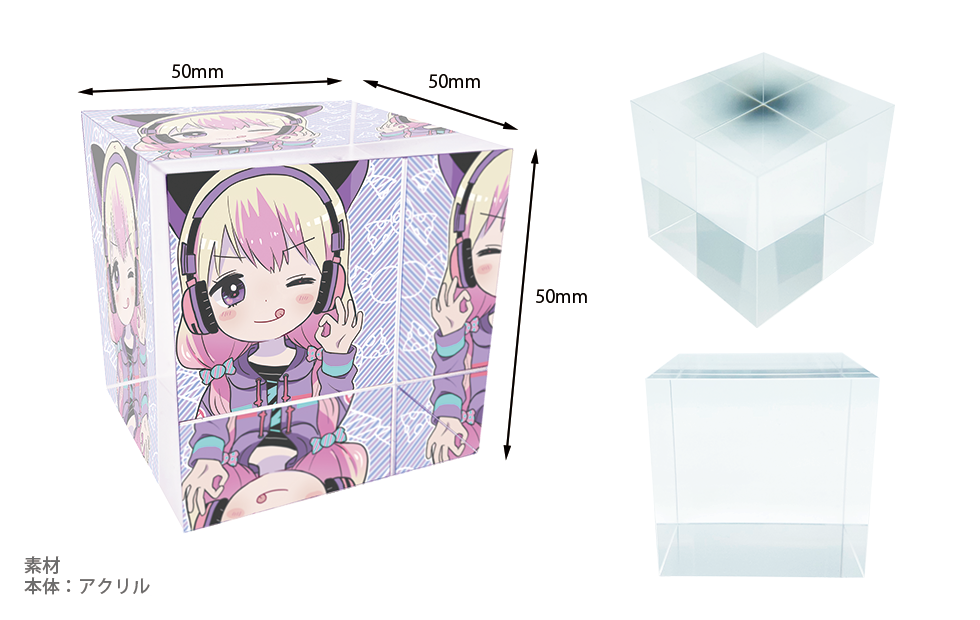 アクリルキューブサイズ…50mm×50mm×50mm 印刷範囲…47×47mm(アクリルキューブより若干小さく・余白をもって印刷を行います)