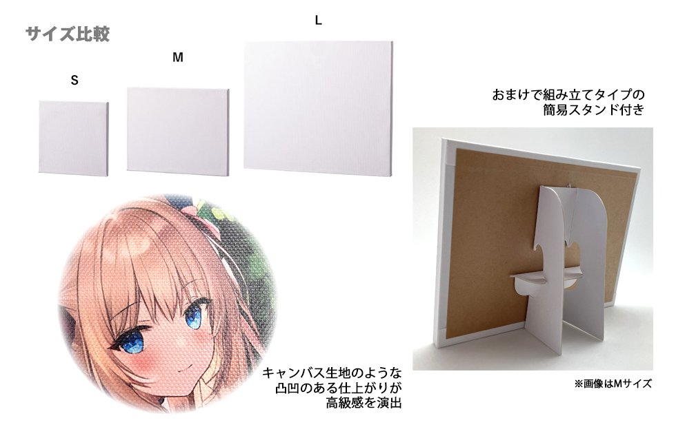 手軽に簡易スタンドで飾るのも、木製イーゼル等を別途準備して本格的に飾るのもあなた次第。