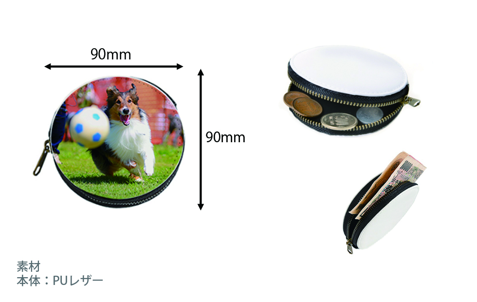 柔らかくしなやかなPUレザーの丸型コインケースです。