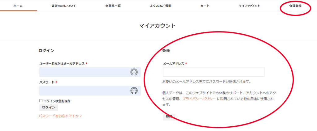 マイアカウント登録をすれば住所入力の手間が省けたり、リピート注文ができたりといい事がいっぱい!