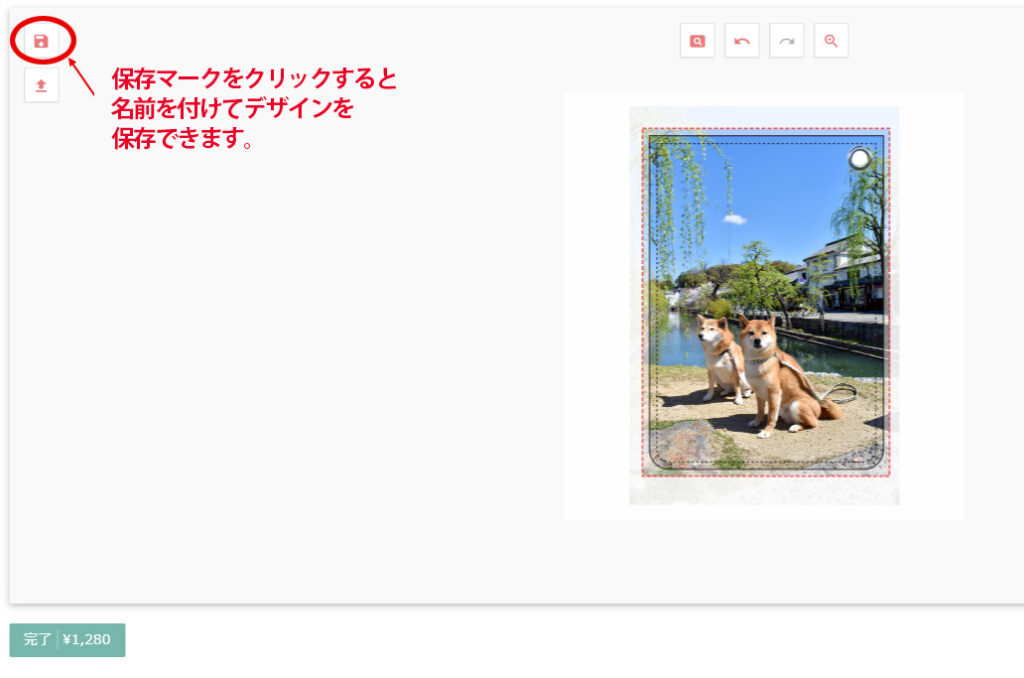デザイン配置シミュレーターの編集画面左上にある「保存マーク」をクリックします。