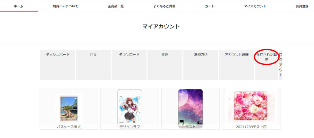 マイアカウントページにある「保存された製品」をクリックすると、今まで保存した製品が表示されます。